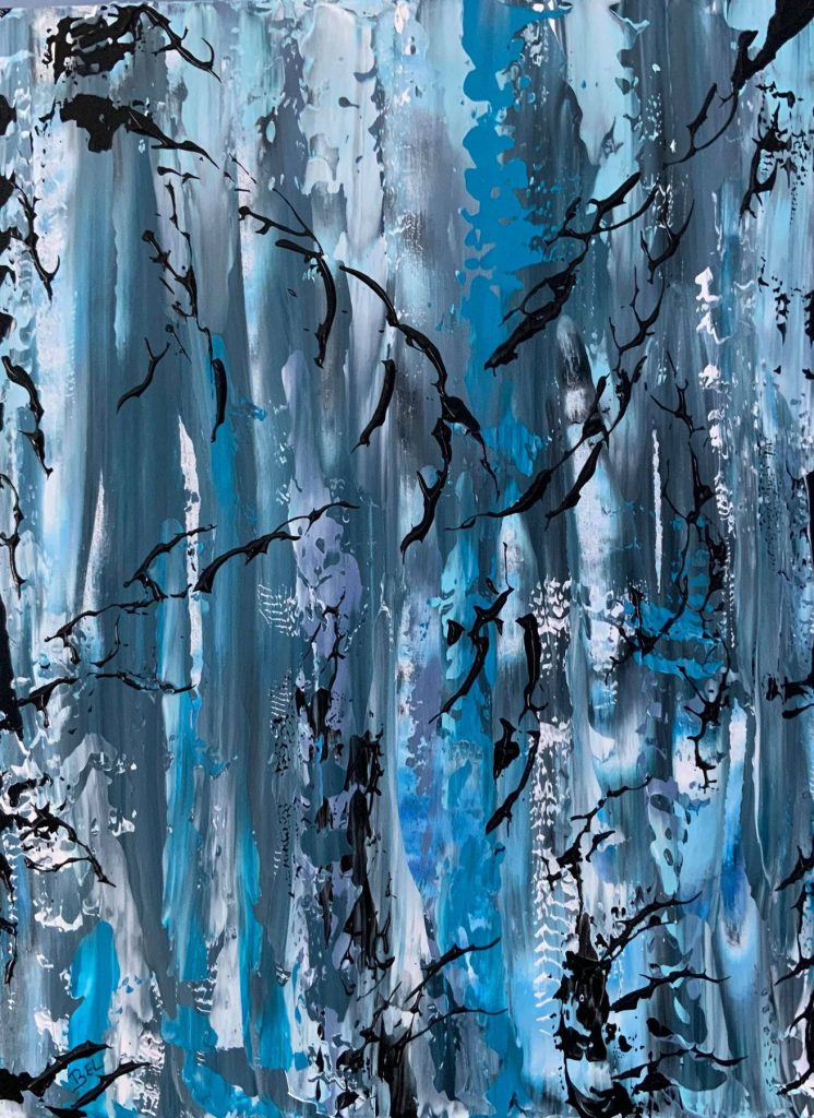 A travers les branches, acrylique sur toile, 20 x 16 pouces, 2019