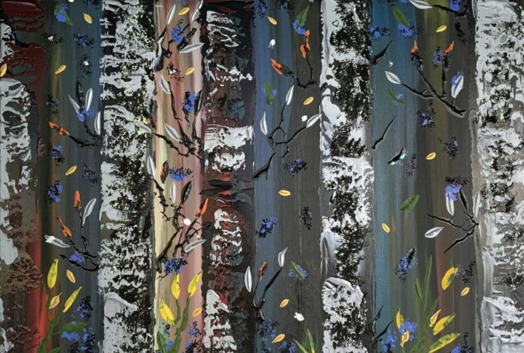 Boisé d’automne, acrylique sur toile, 36x 24 pouces, 2017