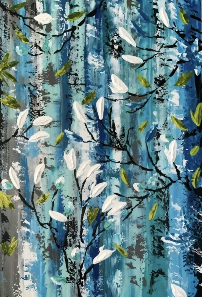 Le temps des fleurs, acrylique sur toile, 40 x 30 pouces, 2019